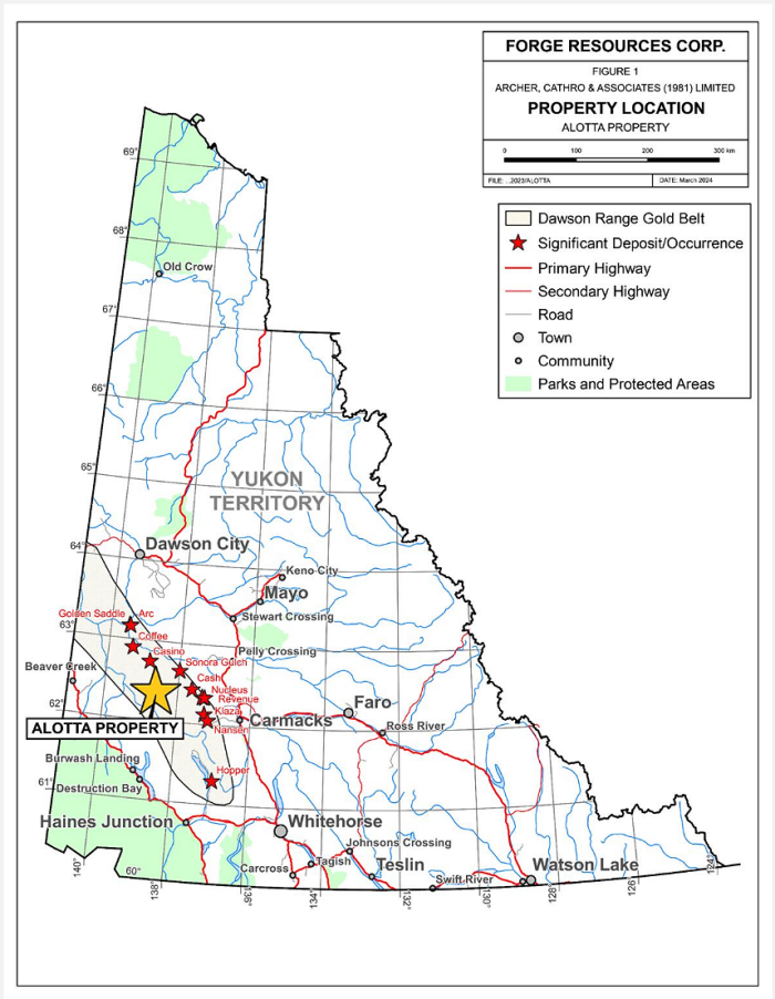 Forge Resources Intersects 3.4 g/t Gold over 44.75 Metres, and 800 Metre Step-Out Discovers 1.04 g/t Gold over 55.52 Metres at Alotta, Yukon